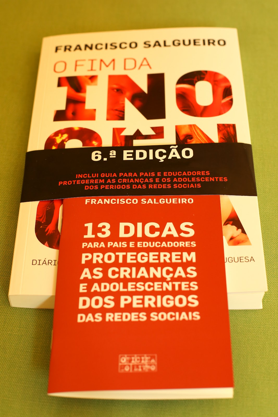 E aqui estão as novidades sobre o Fim da Inocência: 1) 6ª edição; 2) oferta de uma cinta preta a dizer 6ª edição; 3) uma capa nova. Ah! É verdade: e oferta de um livro com dicas para pais e educadores protegerem os filhos nas redes sociais. Que tal?