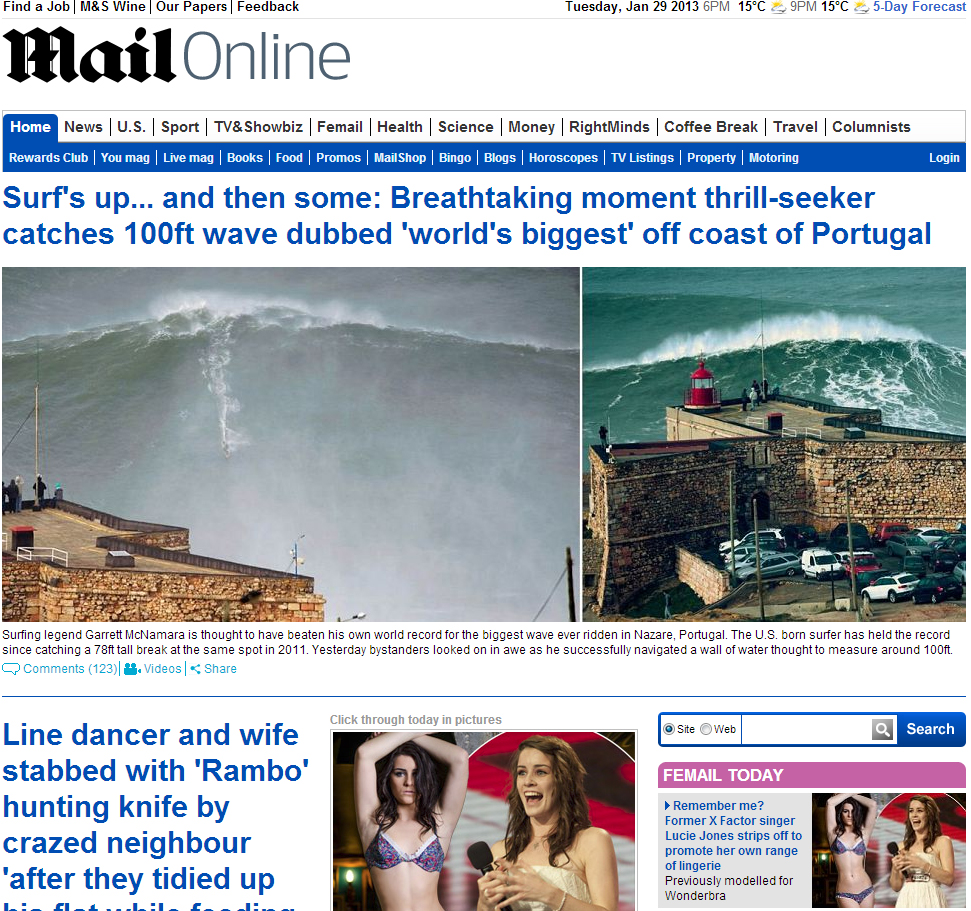 Uma das minhas fotos de ontem da Nazaré é primeira página da versão online de hoje do jornal inglês Daily Mail 🙂 🙂 🙂 🙂 (amanhã vai estar na versão papel). No artigo há mais 3 fotos minhas 🙂
