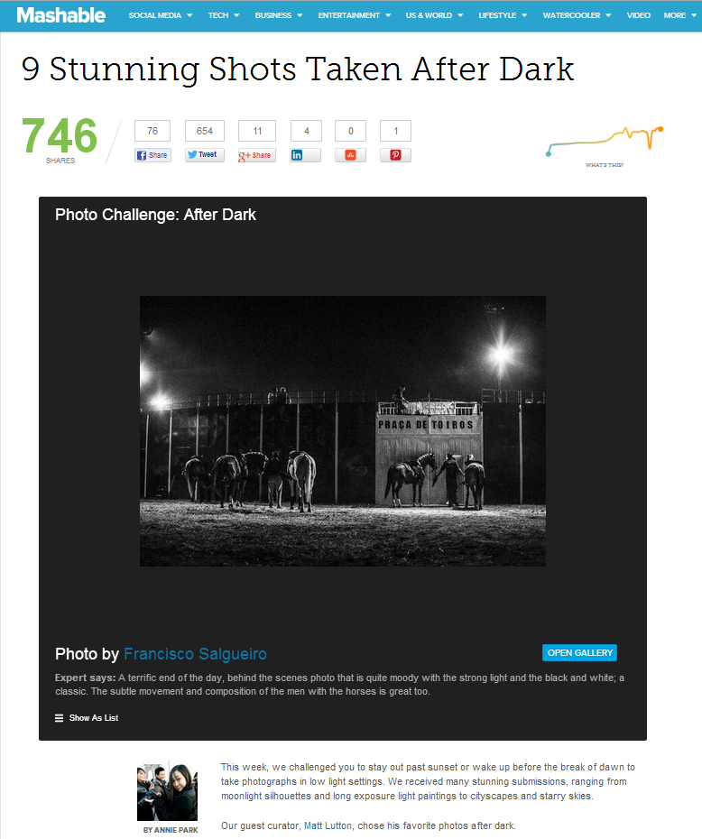 O mais importante site de media norte americano #Mashable elegeu uma foto minha como uma das melhores da semana. Disse que é “um clássico” 🙂 Bom final de dia 🙂 http://mashable.com/2013/07/09/after-dark-photos/#gallery/photo-challenge-after-dark/51dc4f7f97b2f82b0d004907
