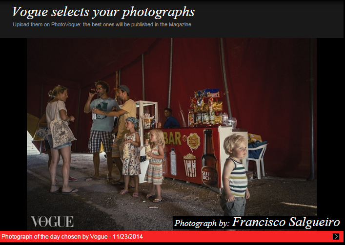 Há meses absolutamente fantásticos. Pela segunda vez em Novembro uma fotografia tirada por mim foi escolhida pela Vogue como foto do dia. Cada vez que olho para a qualidade das outras fotografias que lá são publicadas eu ainda fico perplexo e radiante. :-))))))